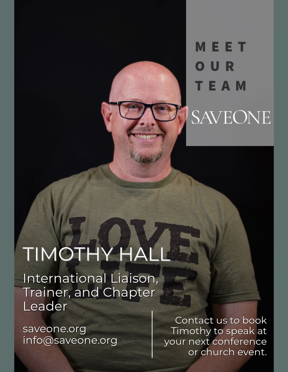 I know Timothy’s passion for the vision of SaveOne and his involvement in the ministry around the world. I have seen his heart toward helping others recover from the post abortion experience. Even in our own church, our members who have received ministry from Tim and Kristy in this area, so many lives impacted and transformed by the grace of God from their efforts.
